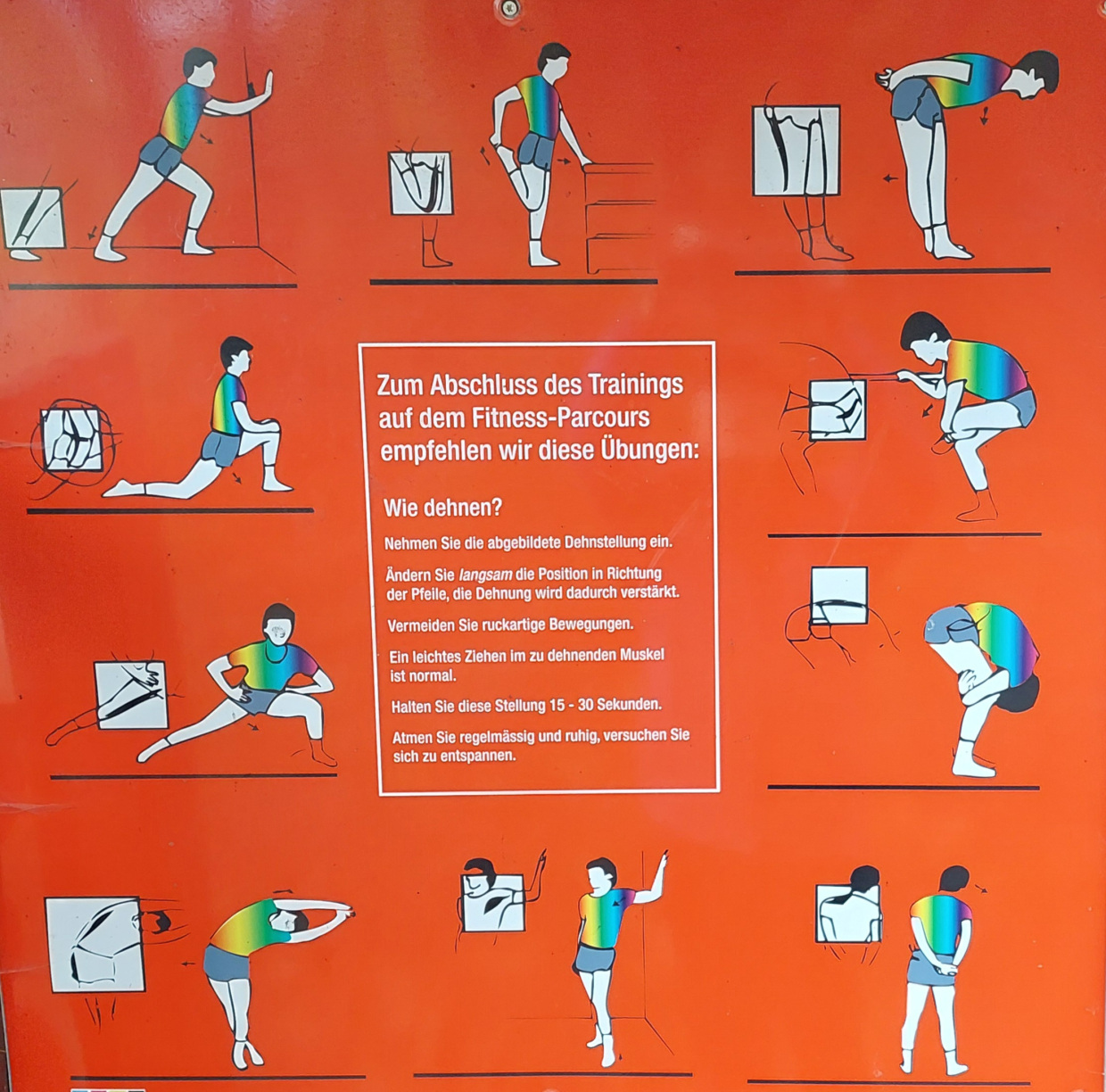 12 Fitnessstationen (teils mit Kraftgeräten)